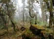 平坦な道になると、松とシャクナゲと苔の森でガスっていた。ガスっている森は幻想的だが、不安にさせる力が働く。やがてガスも取れ、視界がクリアになるとちょうど西陽が射していてとってもきれいだった。木漏れ日が美しい。シンゴンパの村に入った時、奥に雲海が広がり、ちょうど夕日が光っていてとてもきれいだった。
