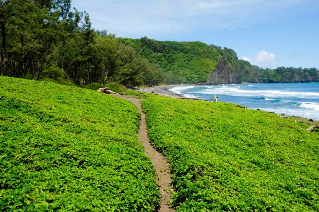 トレイル名/グリーンサンドビーチトレイル (Green sand beach Trail) 場所/カウ 歩行時…